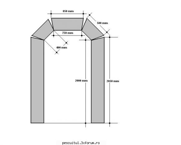 Si acoperisul cortului . Acum : cotele din toate cele trei schite sunt efectiv deduse geometric . Iti imaginezi ca n-am stat sa intind cortu'-n living sa-l masor , insa am impresia ca n-am gresit prea mult .